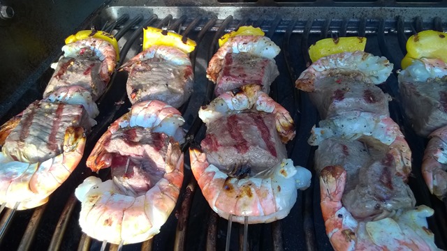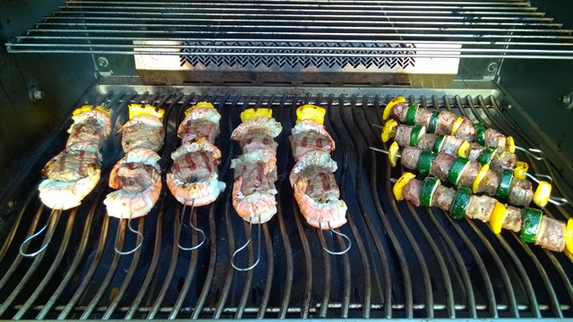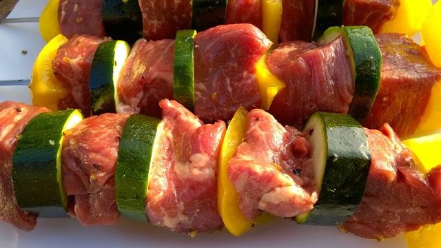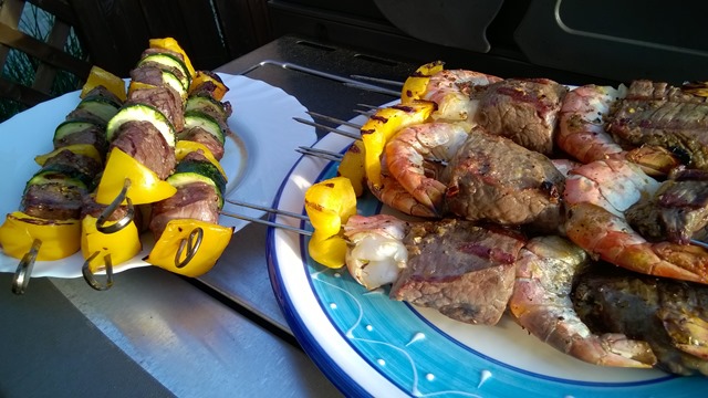 So, wenn das Risotto fast fertig ist, können wir uns um die Spieße auf dem Grill kümmern.