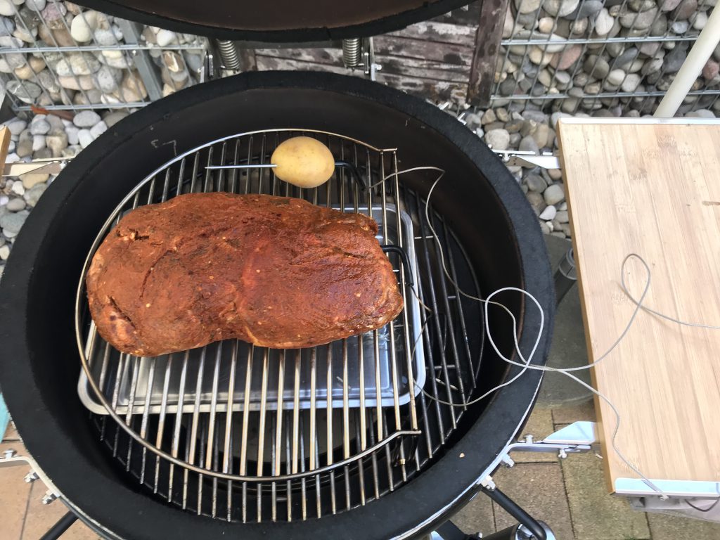 Nach knapp 10 Stunden war es dann soweit 🙂 Die Kerntemperatur hatte 92°C.