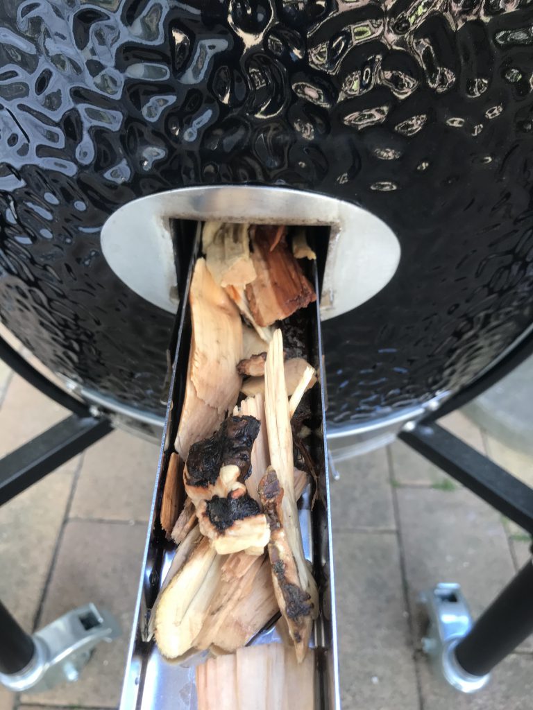 Das coole am Ei ist, dass es ein extra Loch inkl. Zuführschiene für die Holzchips hat. Da