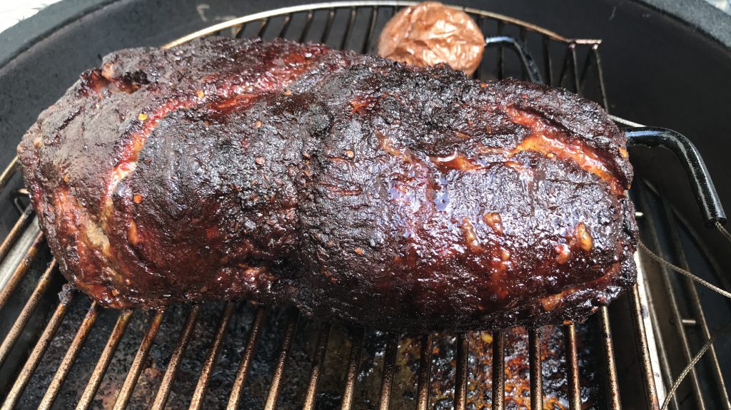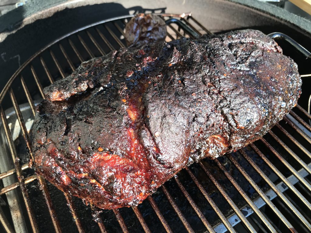 So sieht das gute Stück nach ca. 6 Stunden aus. Aktuelle Kerntemperatur war auf 84°C