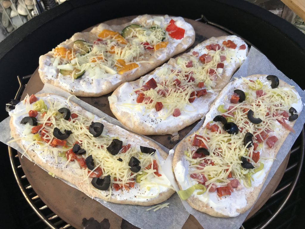 Lange habe ich überlegt, wie ich auf einen runden Pizzastein was machen kann, dass alle zusammen essen können. Was soll ich euch sagen, ich habe da was gefunden, lecker, schnell und sogar auf Wunsch Veggi !!!