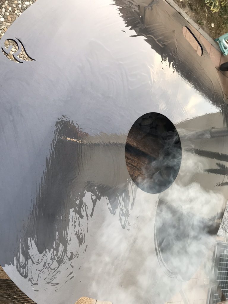 Ich hatte das gute Stück beim Hersteller bestellt und dann per Paketdienst liefern lassen. Okay, war fies denn bei ca. 80 cm Durchmesser und 5mm Materialstärke musste der arme Kerl gute 20kg aus dem Auto schleppen. Ich sag es gleich, hat er nicht gemacht. Hat mich gerufen und gesagt „musst du helfen, ist schwer“. Aber, was muss, das muss, also anpacken und rausschleppen.