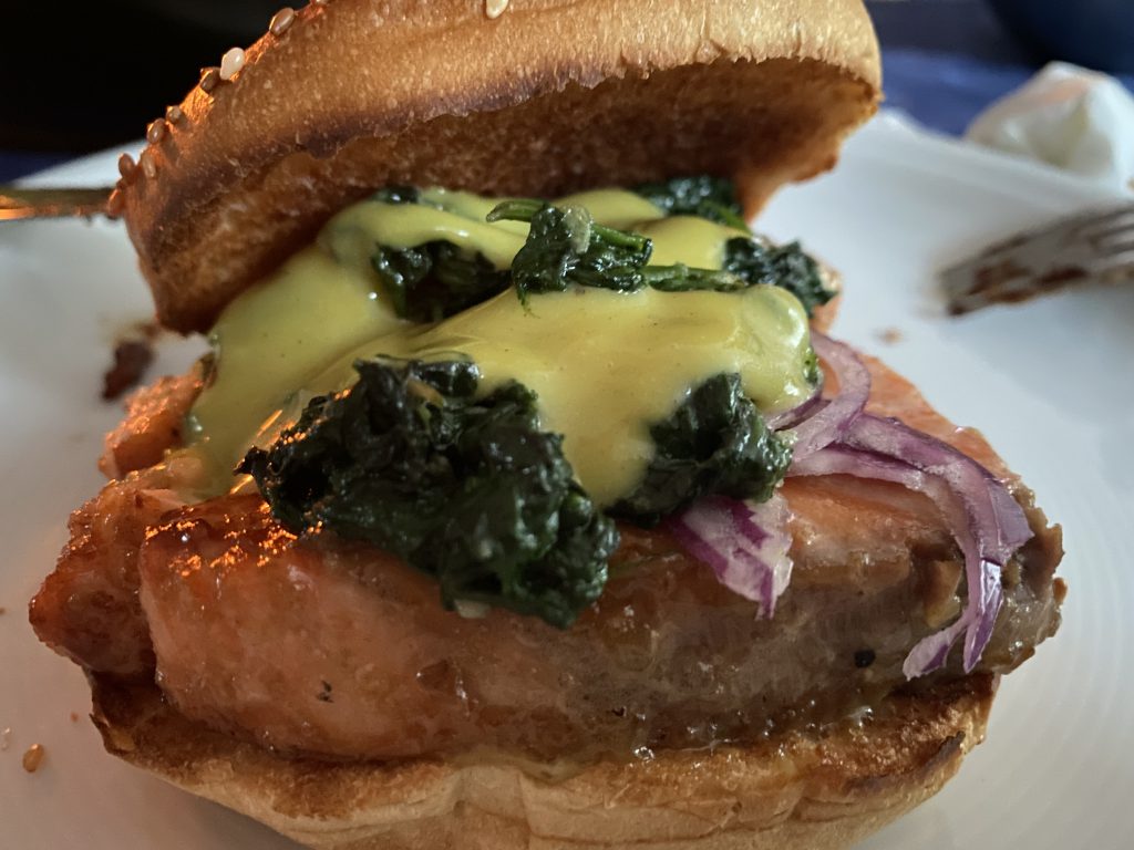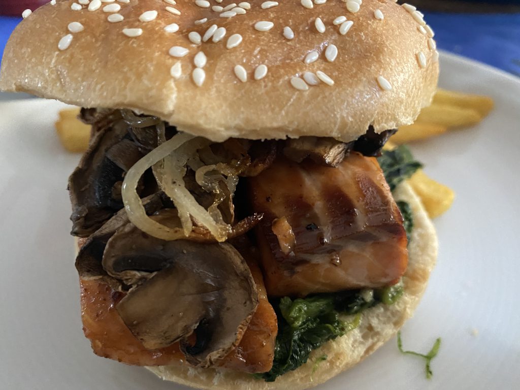 Wir haben uns einen Teriyaki Lachs Burger mit Shiso Kresse gegönnt – Ich sag euch, das haut euch die Socken weg