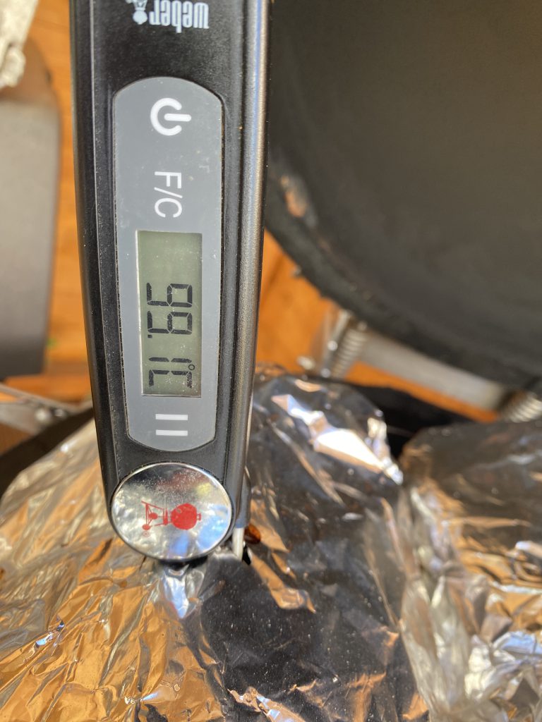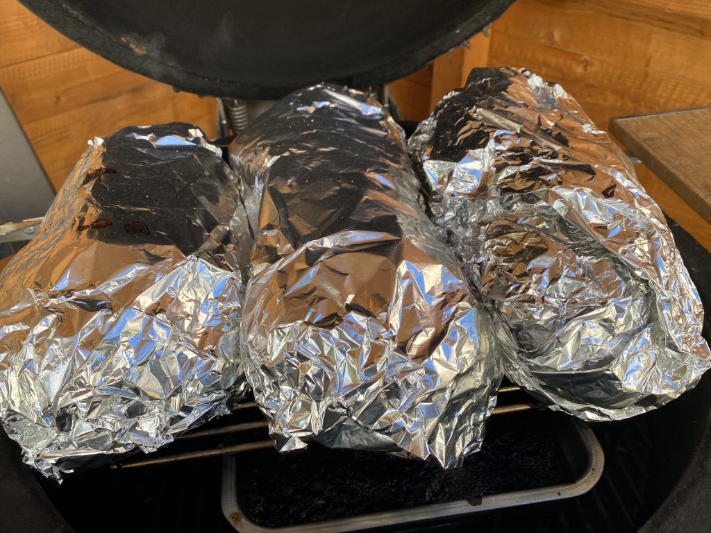 Und dann, alles nochmal für ca. 7h bei 130-140°C wieder auf den Grill.